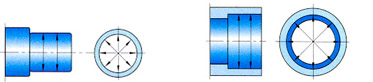 如图1和图2所示,分几处测量轴径与外壳孔径。还要认真检验轴与外壳的圆角尺寸及挡肩的垂直度。